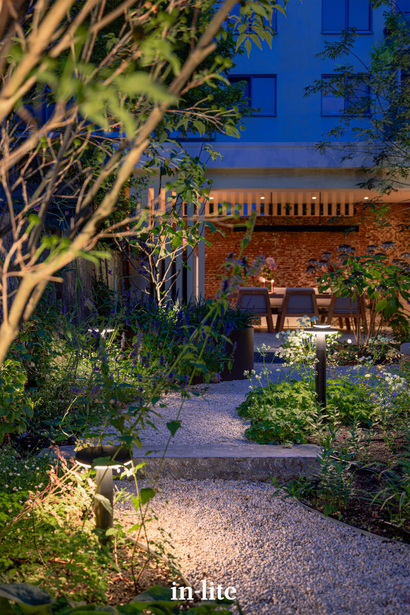 A taller version, the in-lite® DISC, is also available. Using both heights together within the same garden scheme creates a layered, visually striking lighting effect.