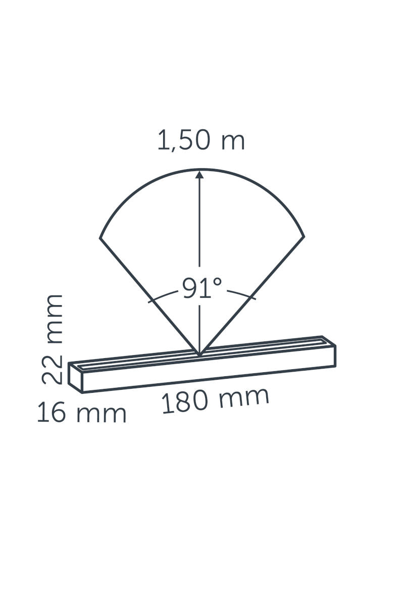 Part of the EVO lighting range, the EVO HYDE 180 uses high quality, energy-efficient LEDs to deliver natural colour rendering. The integrated diamond-cut lens ensures smooth, even light distribution with minimal glare. This makes the fitting well suited to installation within staircases, seating areas, balustrades, platforms and benches. For best results, it should be installed beneath an overhang of approximately 50–60mm.